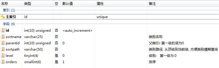 1. 建設(shè)數(shù)據(jù)庫(kù)表: sortclass 表名字段如下: