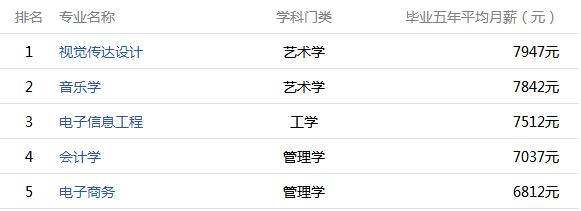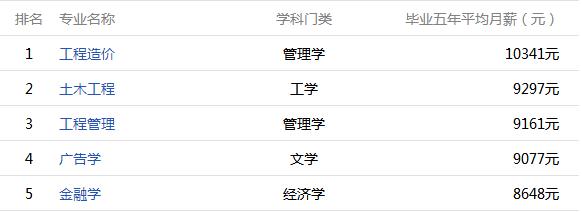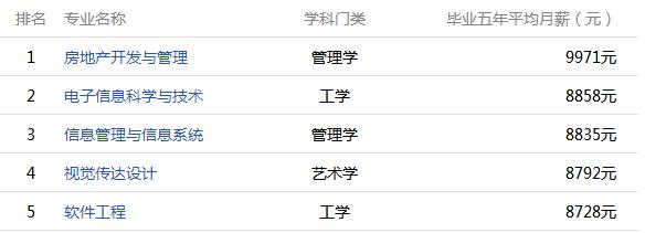 畢業(yè)五年后薪酬:8325元