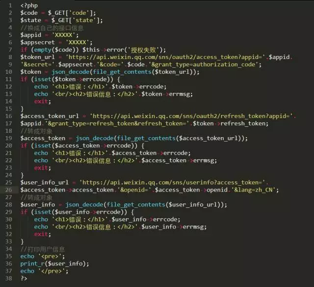 header('location:https://open.weixin.qq.com/connect/oauth2/authorize?appid='.$appid.'&redirect_uri=127.0.0.1/oauth.php&response_type=code&scope=snsapi_userinfo&state=123&connect_redirect=1#wechat_redirect');