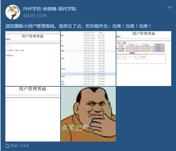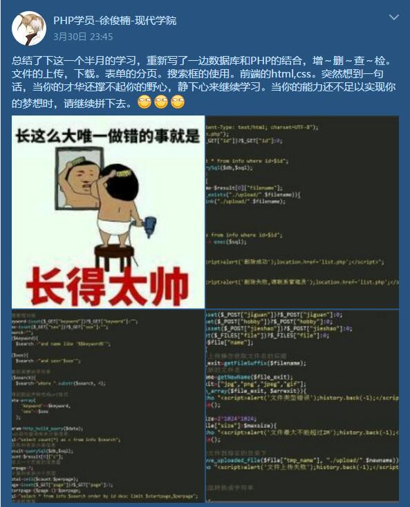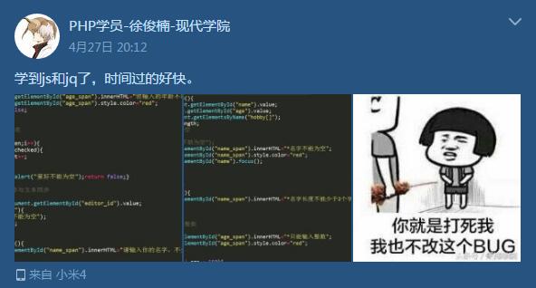 2017年應(yīng)屆畢業(yè)生,畢業(yè)于江西現(xiàn)代學(xué)院,電子信息專業(yè),于2017年2月底參加雅騰教育舉辦的php+web前端開發(fā)日常班學(xué)習(xí),于2017年6月底學(xué)完整個(gè)規(guī)定內(nèi)課程技術(shù)并順利就業(yè)。