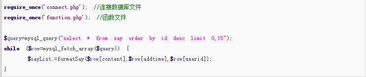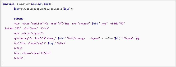 在function.php中有兩個(gè)函數(shù),formatSay()用來(lái)輸出用戶評(píng)論列表,即輸出上文中的HTML。