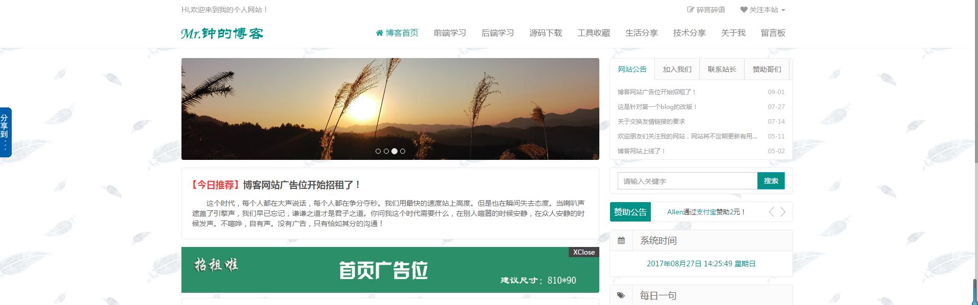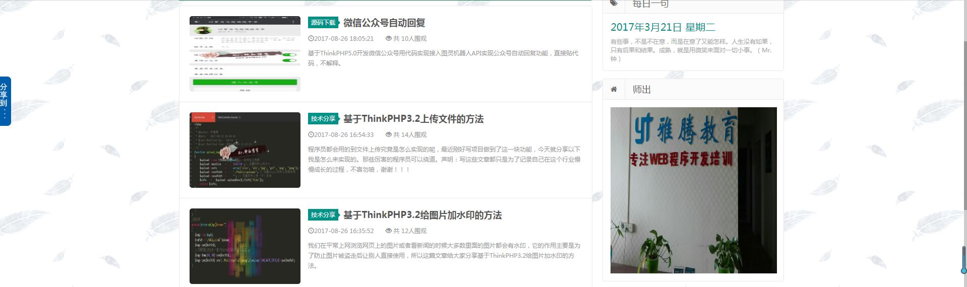 移動(dòng)互聯(lián)網(wǎng)時(shí)代,刷朋友圈、發(fā)微博已經(jīng)成為我們生活中重要的組成部分;我們?cè)诹私鈩e人的同時(shí),別人也在通過這些媒介了解我們;自媒體時(shí)代,又是建立品牌的時(shí)代,就像微信公眾號(hào)的廣告語——再小的個(gè)體,也有自己的品牌,企業(yè)組織需要建立品牌,個(gè)人同樣需要建立自己的品牌和窗口,接下來一起來看看雅騰教育PHP開發(fā)學(xué)員康勇同學(xué)開發(fā)的一個(gè)關(guān)于自身品牌建立的個(gè)人博客,通過這個(gè)博客,你可以更好的了解到他的世界。