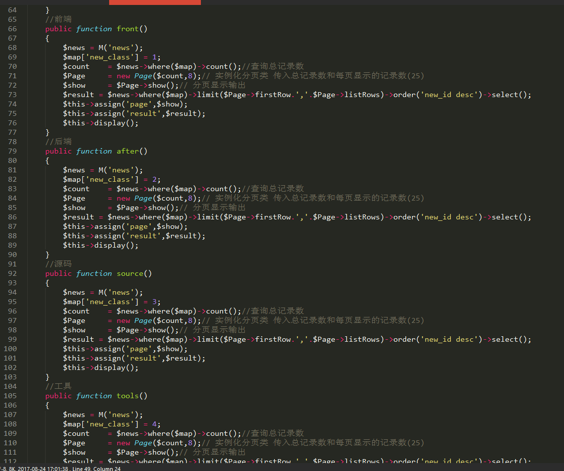4、采用php框架TP5