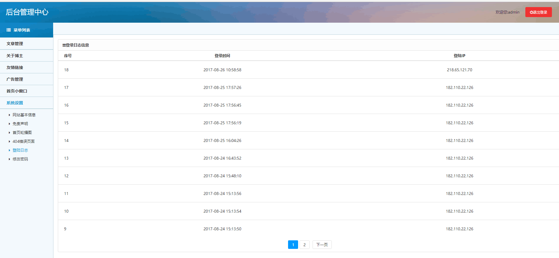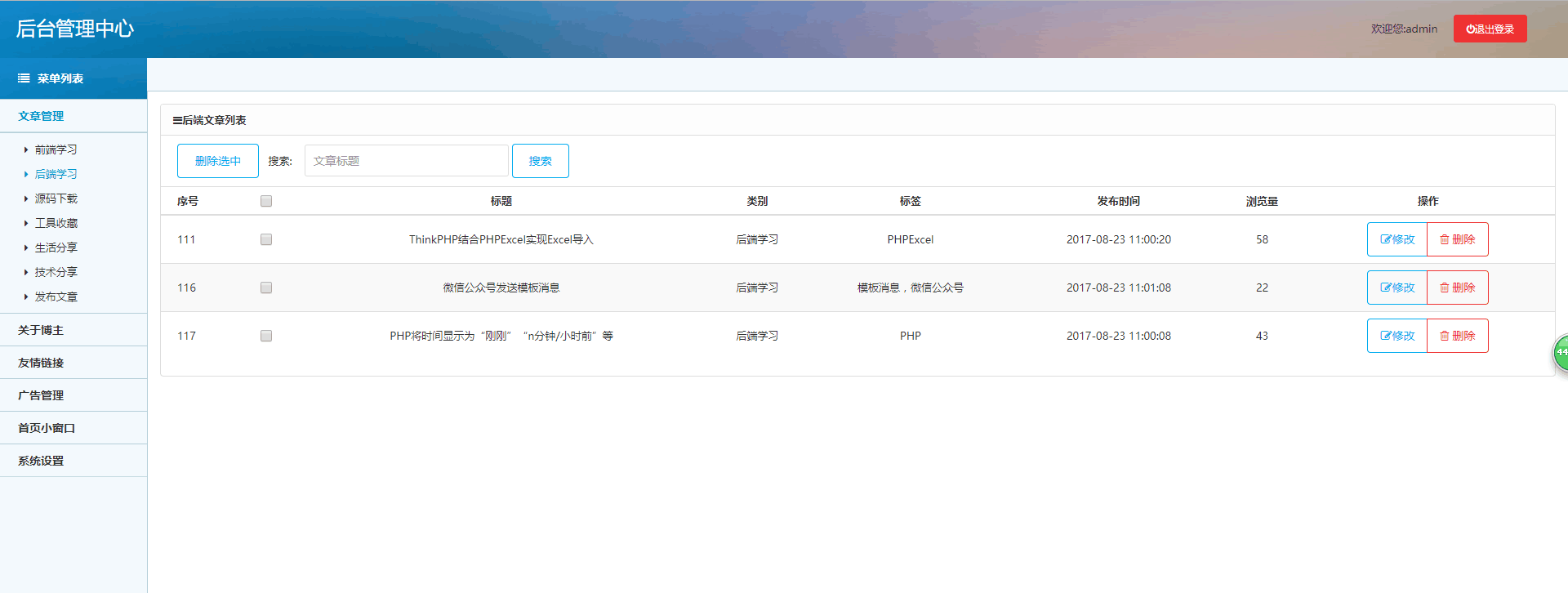 后臺(tái)管理展示部分