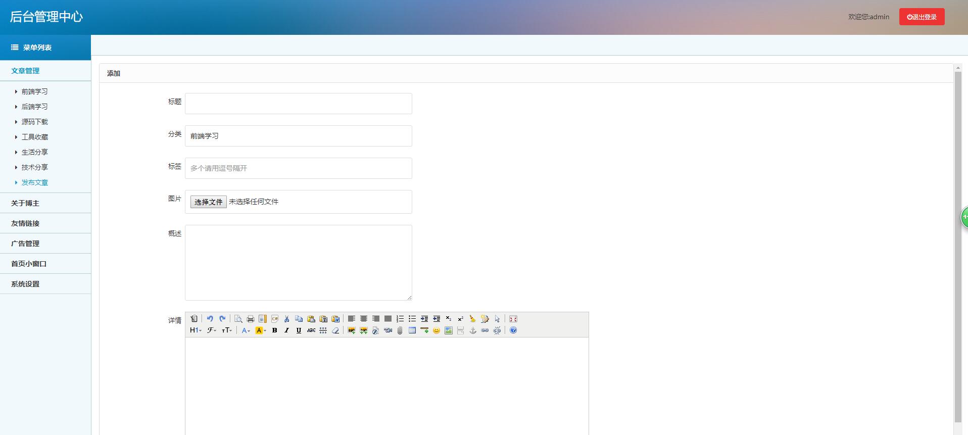 2、博客的整個(gè)框架、布局,采用的是web前端開發(fā)技術(shù)(html+css+JS+JQ)
