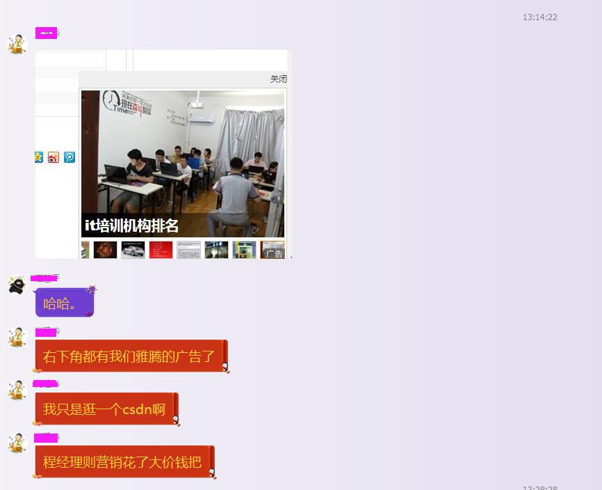 學員是說在CSDN的技術論壇里面看到我們的廣告的,CSDN這個平臺是很多做IT技術的人都很喜歡逛得一個平臺,在他們上面展示的廣告一般都是要收費的,而且廣告費用不菲;在這上面看到有我們的“廣告”除了有點小驚喜之外,我更多的是一臉懵逼,因為我深知雅騰做IT技術php開發(fā)培訓這幾年,就從來沒有去投放廣告,有很多做搜索引擎、競價排名等一些平臺都有找過我們,但是都被我們一一拒絕了。