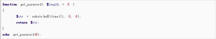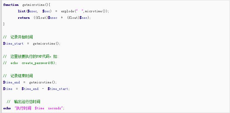 我們使用以下PHP代碼,計算上面的 3 個隨機密碼生成函數(shù)生成 6 位密碼的運行時間,進而對他們的時間效率進行一個簡單的對比。