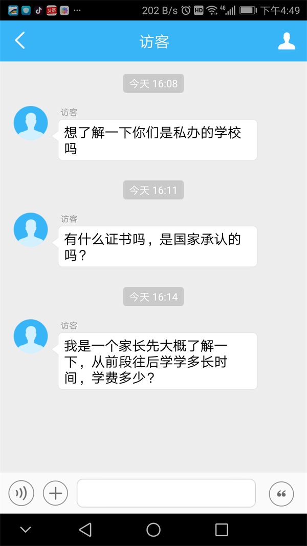 今天下午有一位家長訪問我們網(wǎng)站并在線咨詢了以下幾個問題: