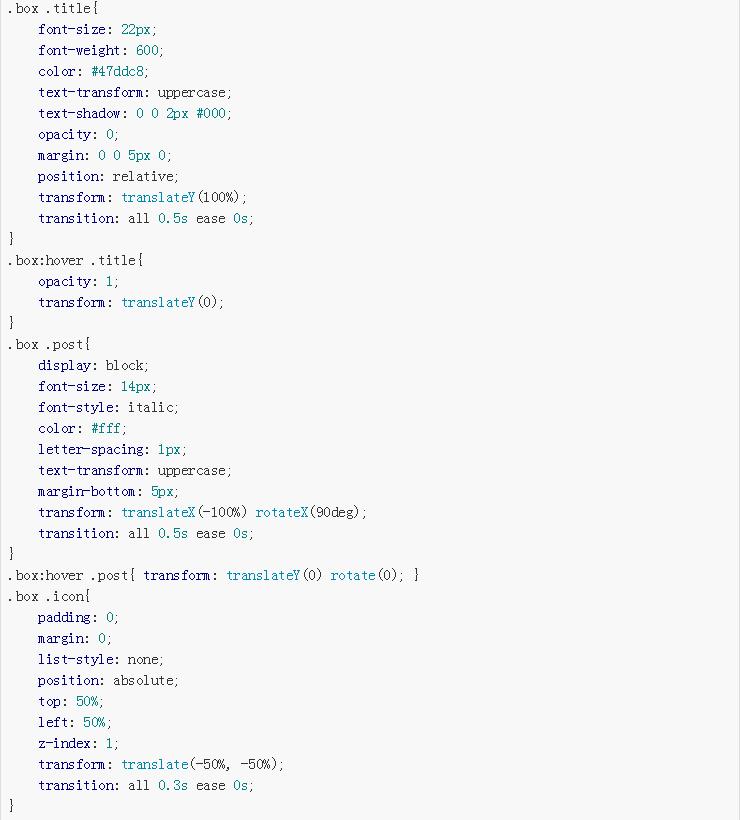 然后通過下面的CSS樣式來實現(xiàn)該css3鼠標經(jīng)過動畫特效。