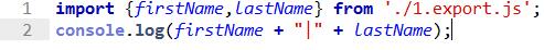 在該文件中通過ES6語法import從main.js中引入firstName和lastName變量. 并且通過console.log將引入的兩個(gè)變量打印到控制臺.