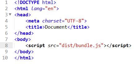 等待一會兒就會發(fā)現(xiàn)工程文件的目錄下多了一個(gè)dist文件夾, 里面放著的就是打包好了的bundle.js文件, 在HTML文件中通過下面的代碼引入js文件