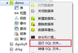 1> 選擇demo數(shù)據(jù)庫(kù)->右鍵->運(yùn)行sql 文件->選擇 剛剛 導(dǎo)出的sql->刷新數(shù)據(jù)庫(kù)->OK